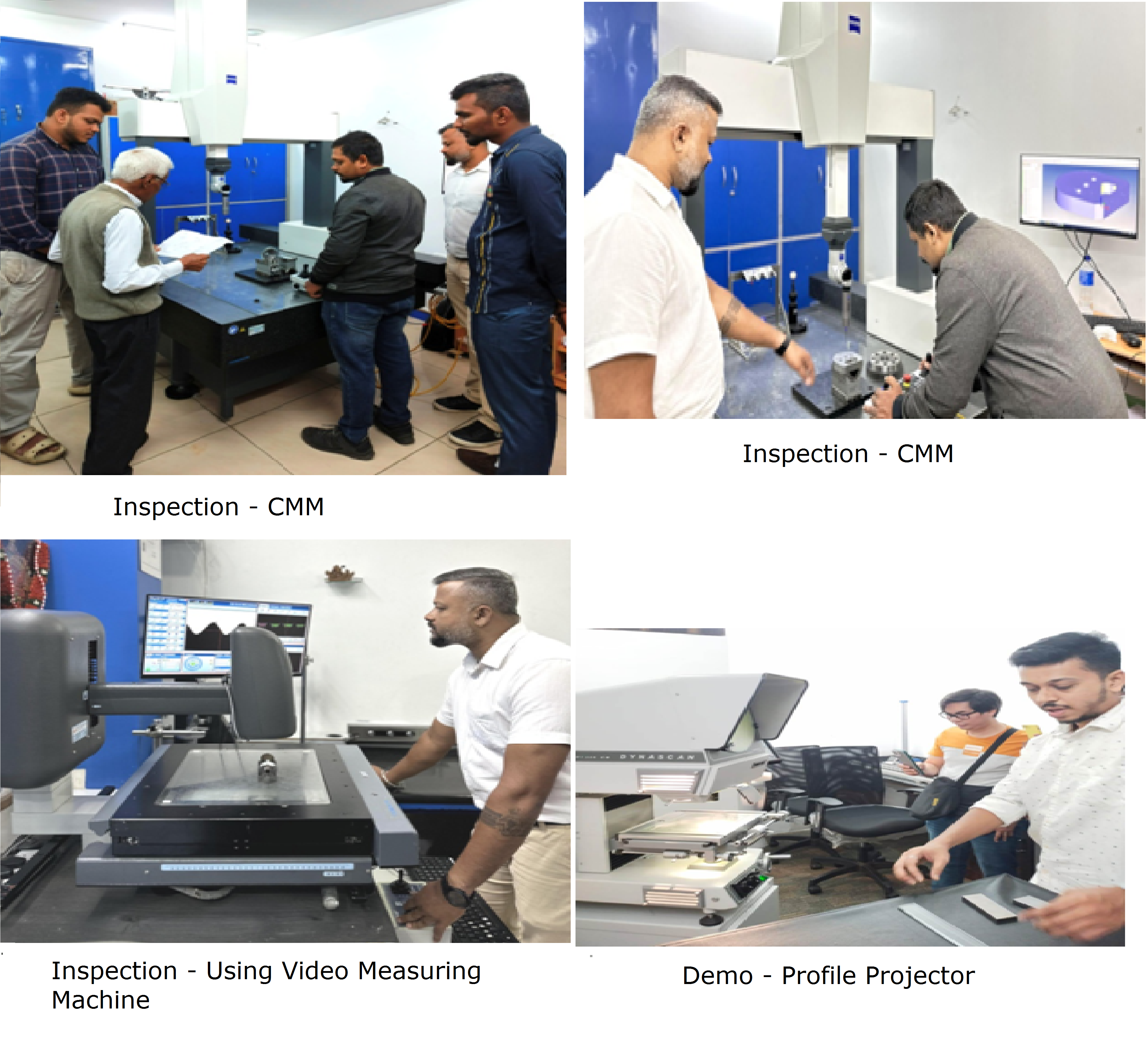 CMM, Profile projectors, Length measuring machines, Micrometer, Vernier Calipers, NPT - Taper Gauges, Slip Gauge set or long series gauge blocks, Spirit level, electronic level, Height masters, Step gauges, caliper checker, DRO’s, electronic comparators, Optical flats / parallels.
